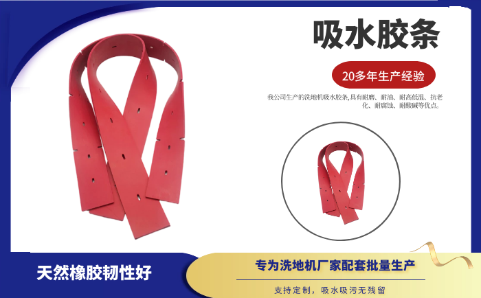 我公司生產(chǎn)的洗地機吸水膠條,具有耐磨、耐油、耐高低溫、抗老化、耐腐蝕、耐酸堿等優(yōu)點。