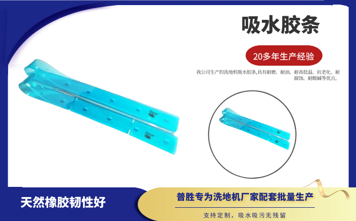 產(chǎn)品說明:吸水膠條是洗地機(jī)吸水扒上的重要部件,作用就是與地面接觸,產(chǎn)生一個密封的空間,把地面上的污水通過風(fēng)機(jī)進(jìn)行回收。吸水膠條一般分為耐油型(進(jìn)口PU原料)和普通型(進(jìn)口NR原料)兩種。